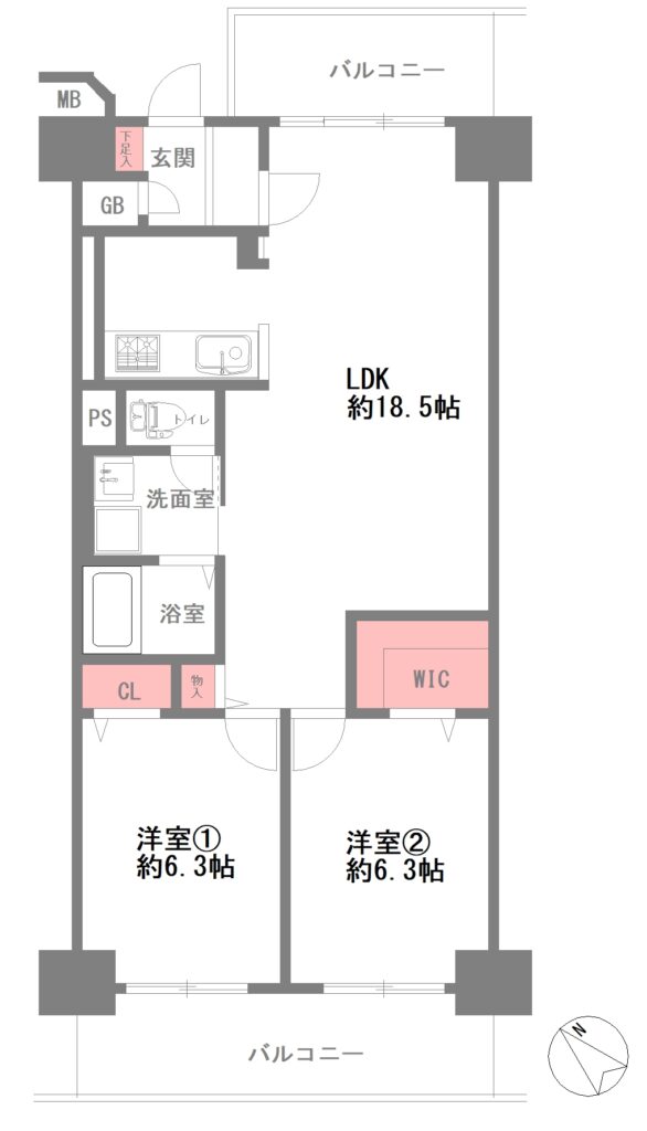 ・バルコニー面積:14.02㎡(南西向き・北東向き) - 間取